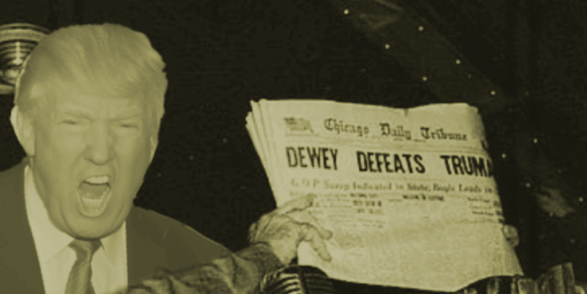 In a stunning reversal of all expected results of the 2016 U.S. Presidential race, it seems write-in candidate and former New York Governor Thomas E. Dewey, a Republican Governor famous for his two failed Presidential bids against Democrat Franklin Delano Roosevelt in the 1940s, has secured the 270 electoral college votes required to clench the office of United States President from both Democratic candidate Hillary Clinton AND Republican candidate Donald J. Trump, according to sources other than just the Chicago Daily Tribune this time.